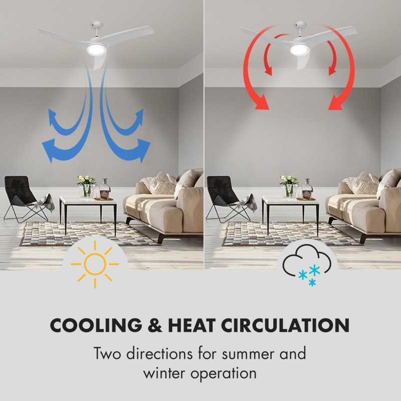 По часовой стрелке: распределяет теплые одеяла воздуха по всей комнате в холодную погоду