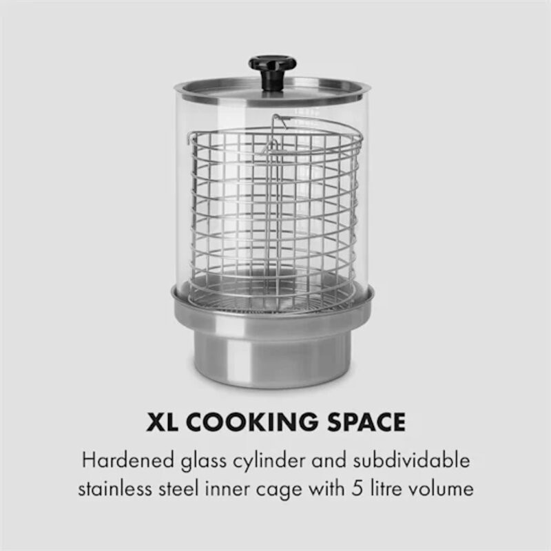 Камера XL: цилиндр из закаленного стекла и делимая внутренняя клетка из нержавеющей стали объемом 5 литров.