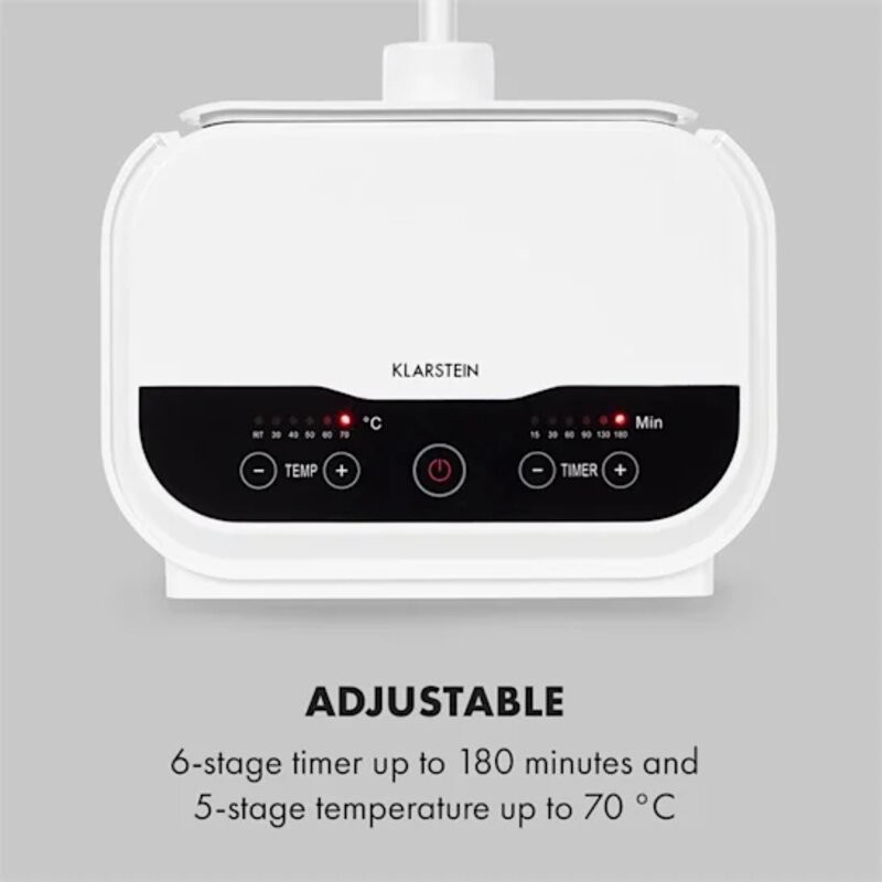 Регулируемый 6-ступенчатый таймер до 180 минут и 5-ступенчатая температура до 70 ° C
