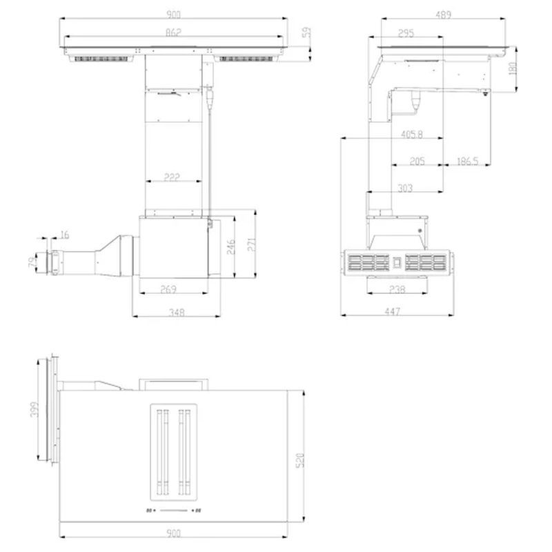 Общие размеры варочной панели: 90 х 30 х 52 см (ШхВхГ)